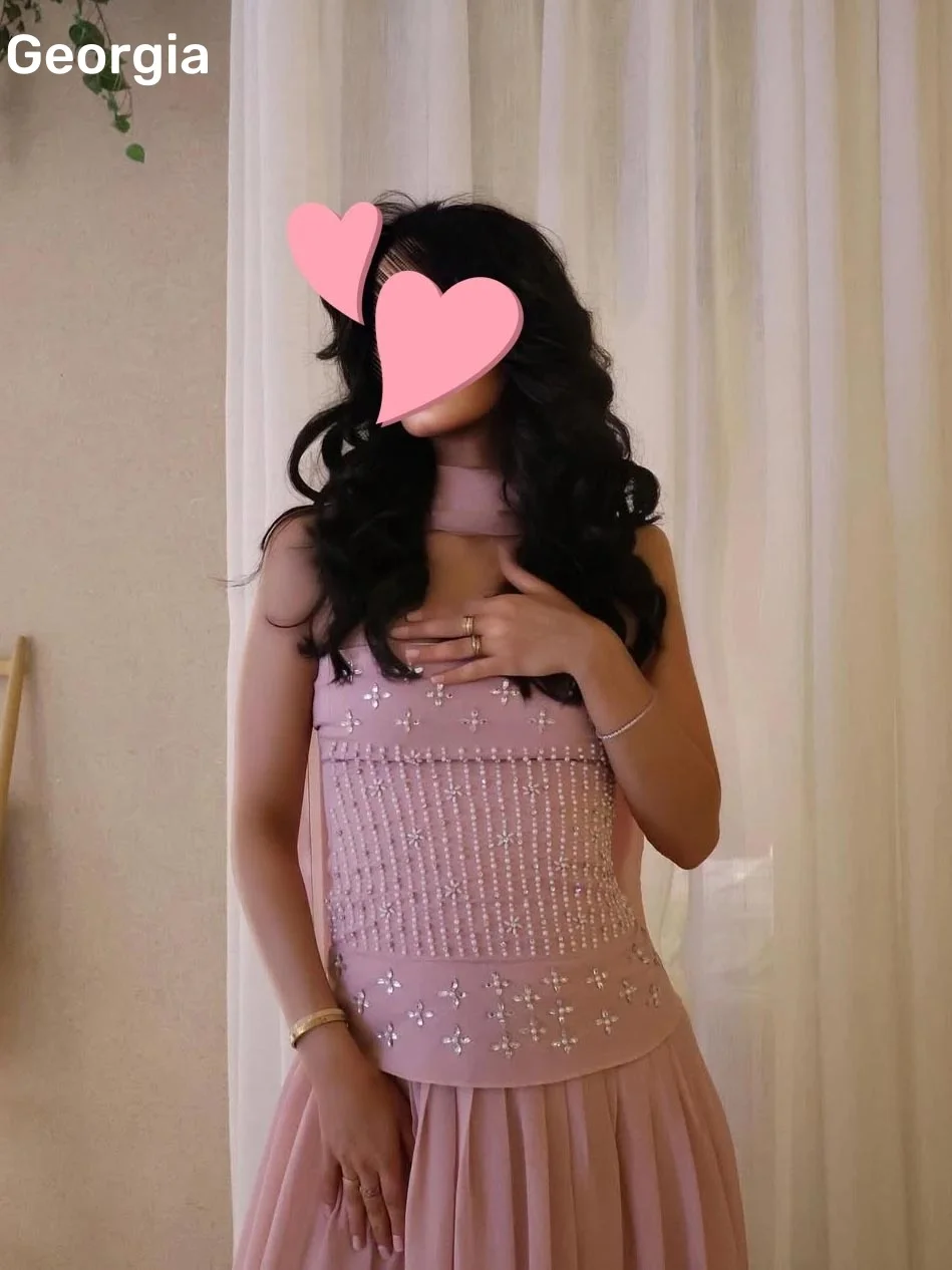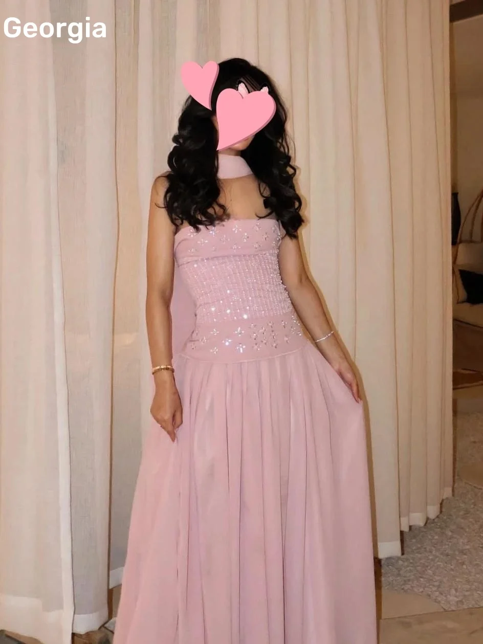 فساتين للمناسبات الخاصة Customized Strapless A-Line Dresses For Prom Floor-Length Chiffon Zipper Up Luxury Evening Dresses Sleev