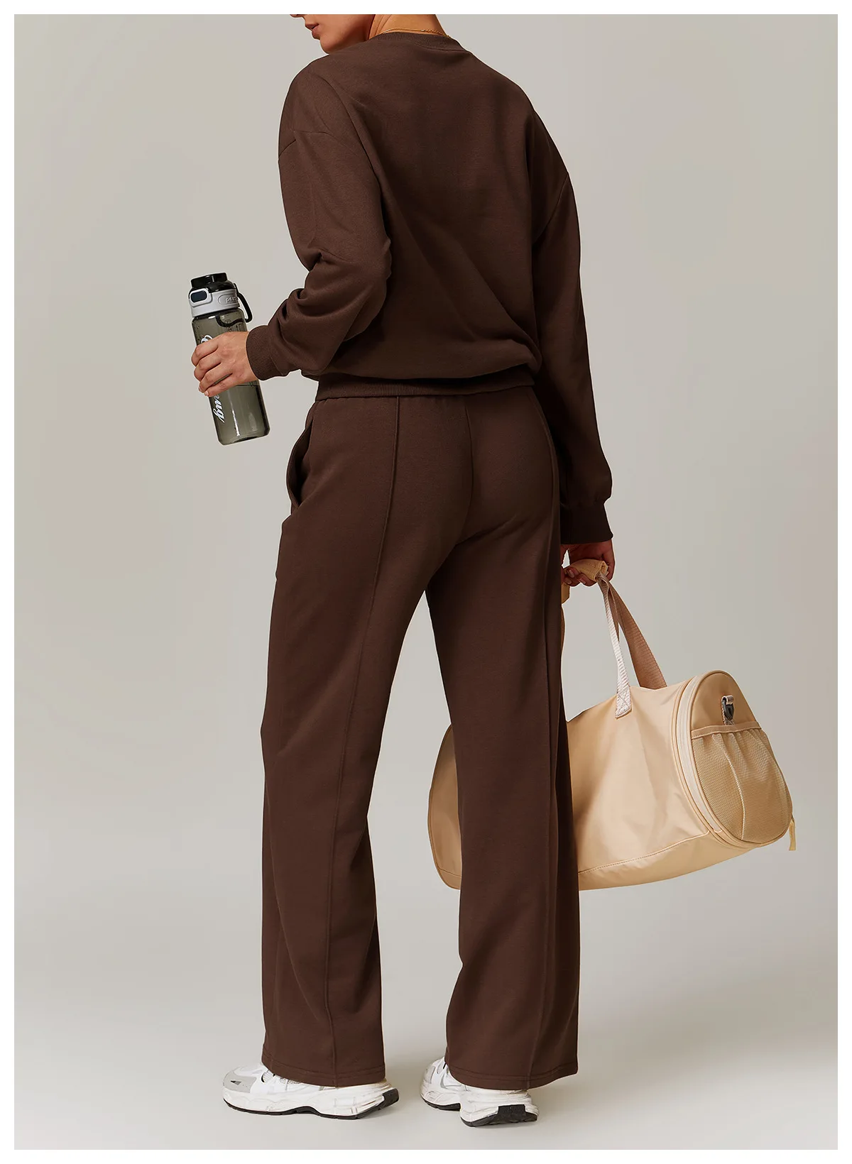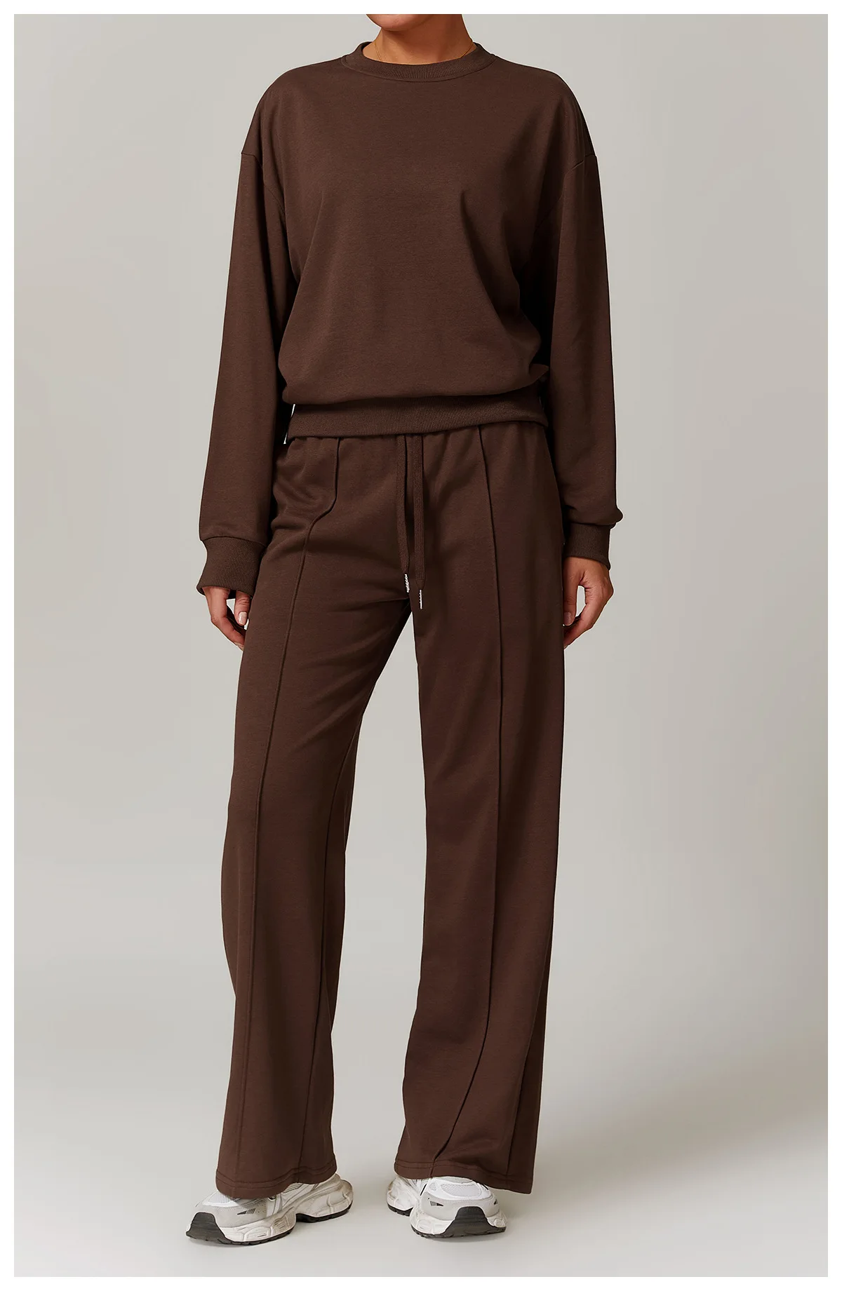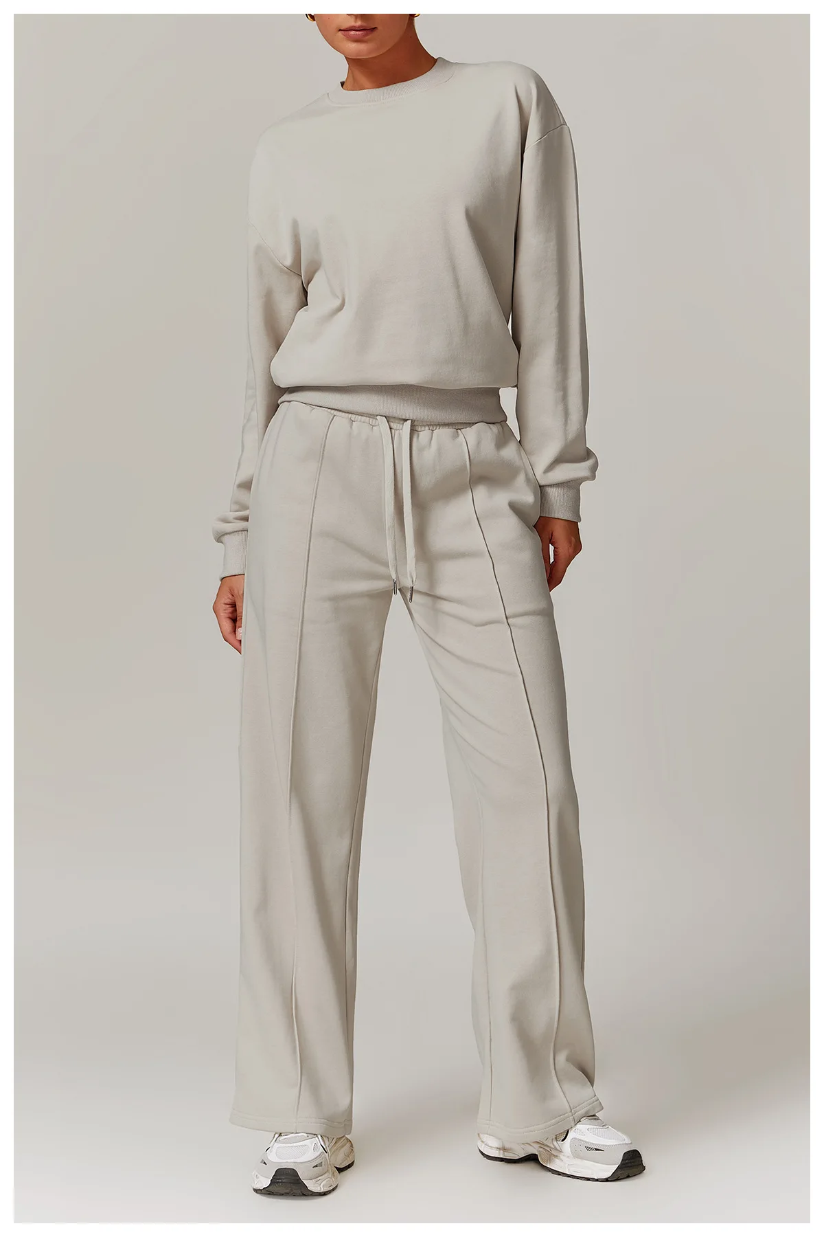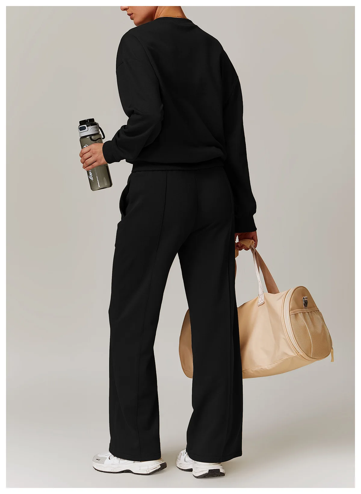 2PCS Sports Set Women Fitness Yoga Suit Gym Sportswear Running Long Sleeve Wide leg Pants Workout Sets Tracksuits Athletic Wear