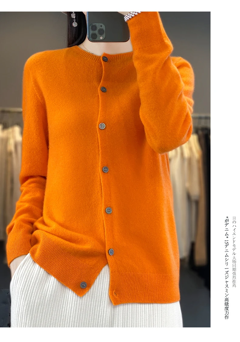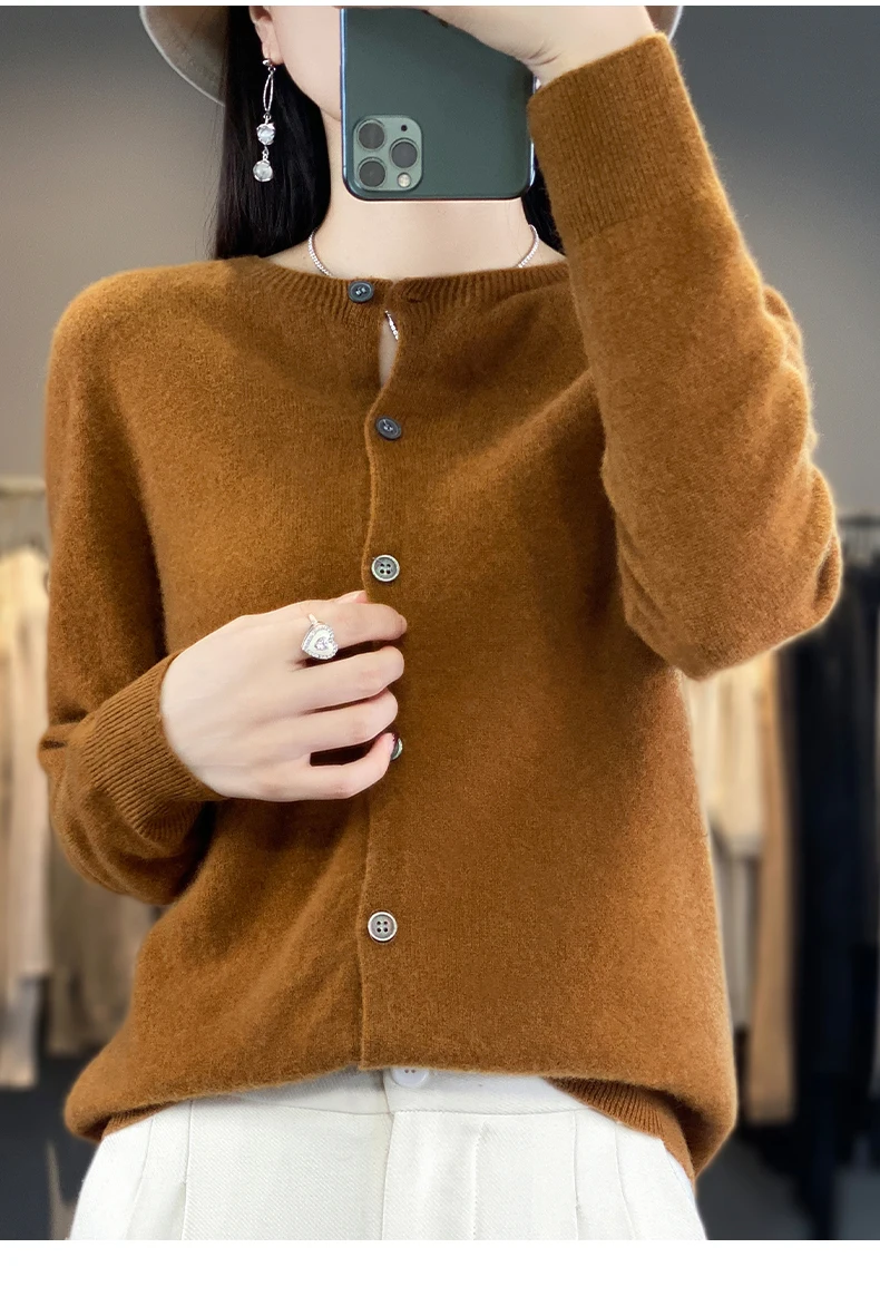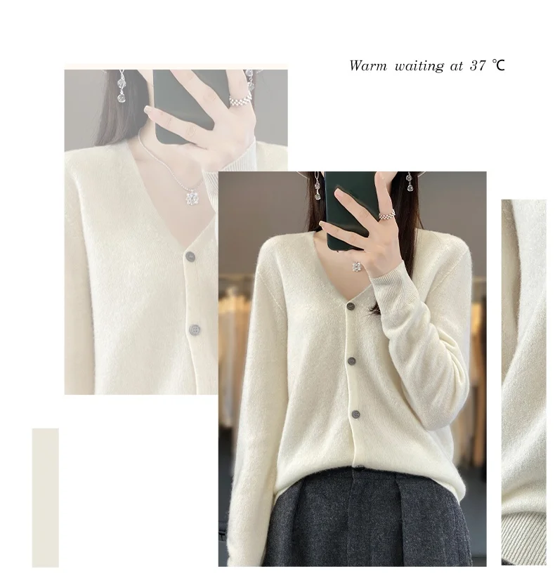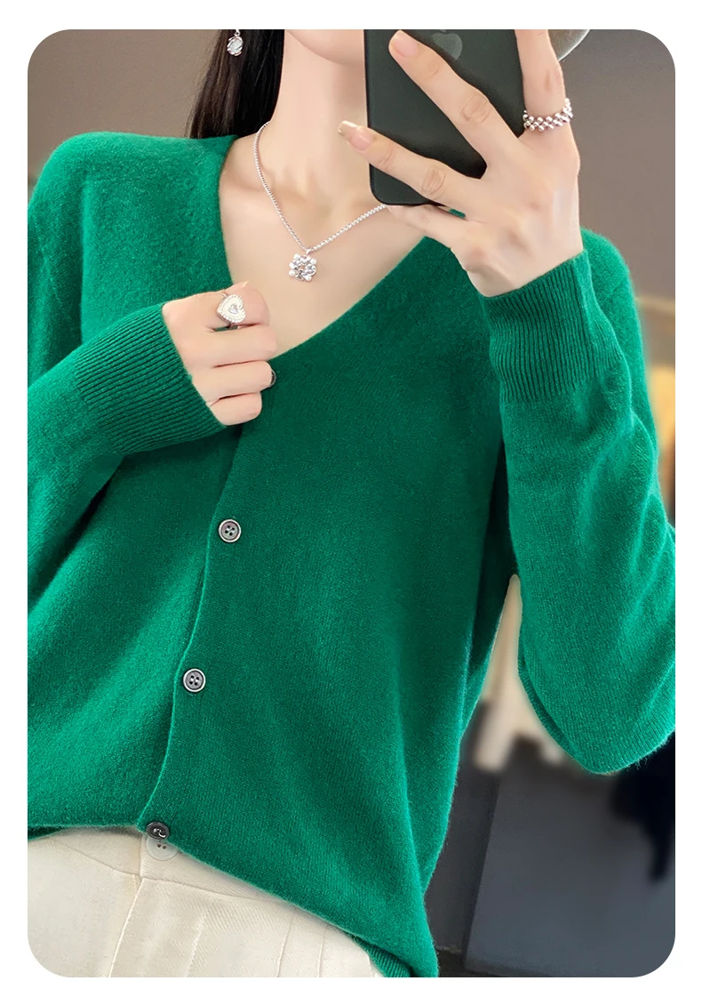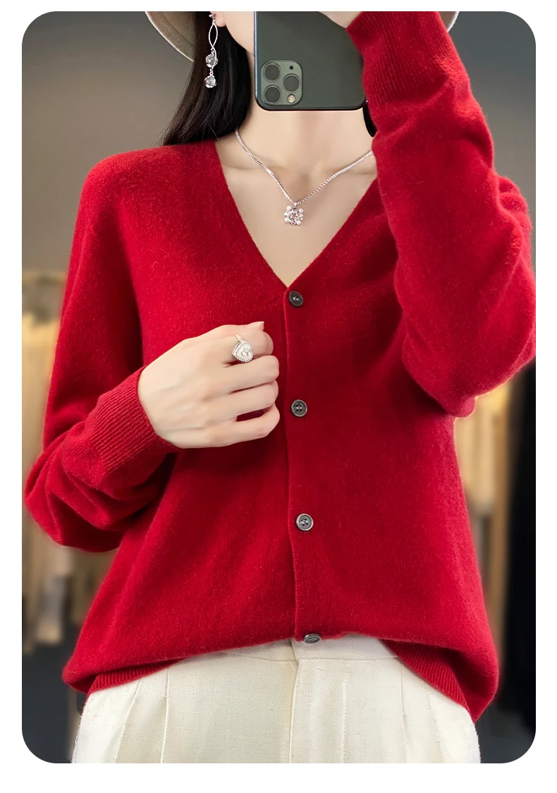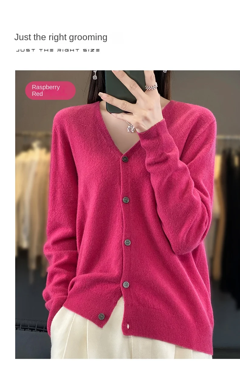 Autumn And Winter New Cardigan 100% Merino Wool Knitted V-neck Sweater For Women, Loose And Soft Cashmere Sweater WQ015