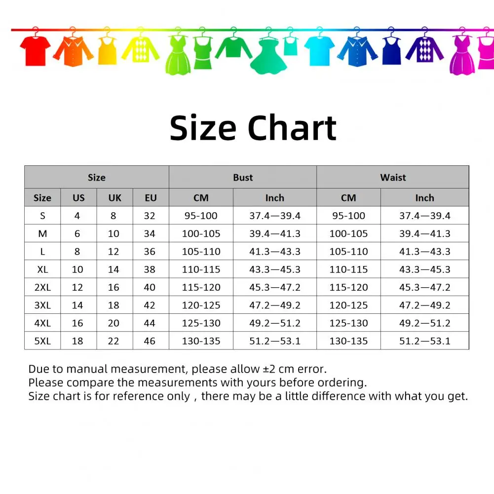 Size: 3XL, Bust: 120cm-125cm/47.2′-49.2′, Waist: 120cm-125cm/47.2′-49.2′ (Approx.)
