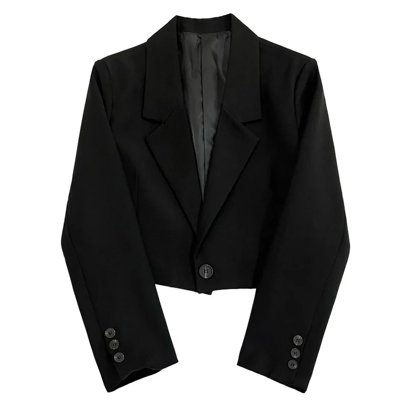 Black Cropped Blazers Woman Trend 2024 New All-match Notched Collar Crop Jacket Women Korean Chic Single Button Suit Coat