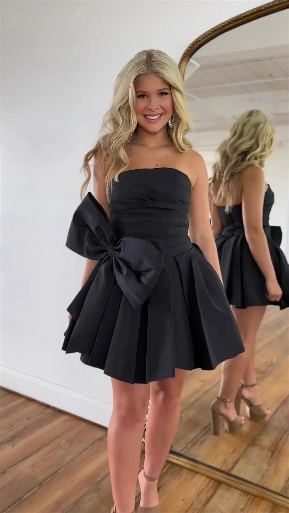 Be the first to review “Black simple sexy strapless mini Cocktail Prom dress Bow Satin 2024 Official Homecoming birthday party dress Robe De Soiree”