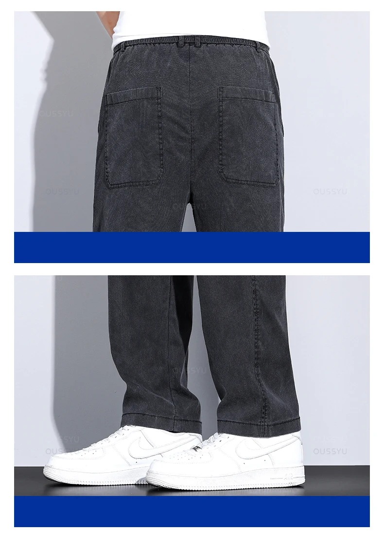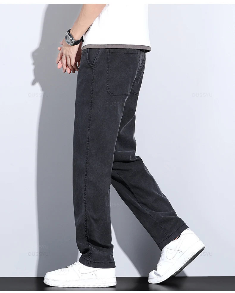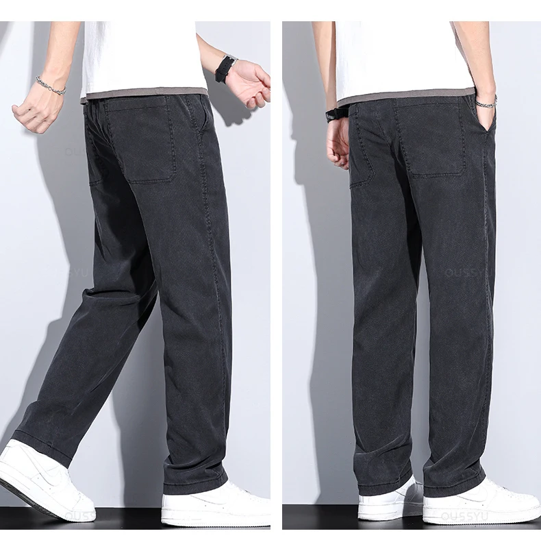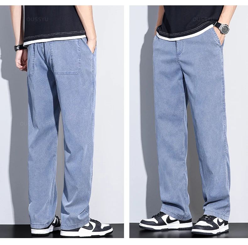Brand Clothing Summer New Soft Lyocell Fabric Jeans Men Blue Elastic Waist Loose Straight Thin Denim Trousers Male Plus Size 5XL