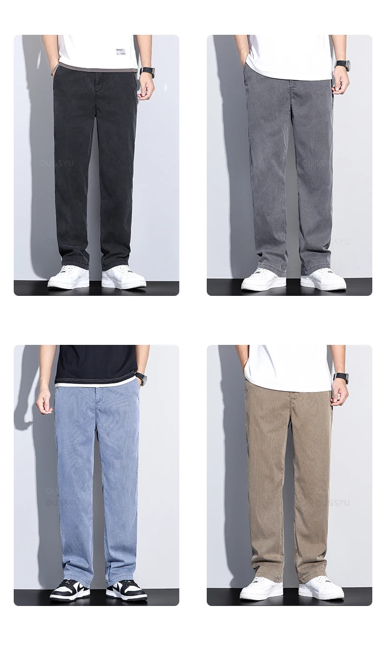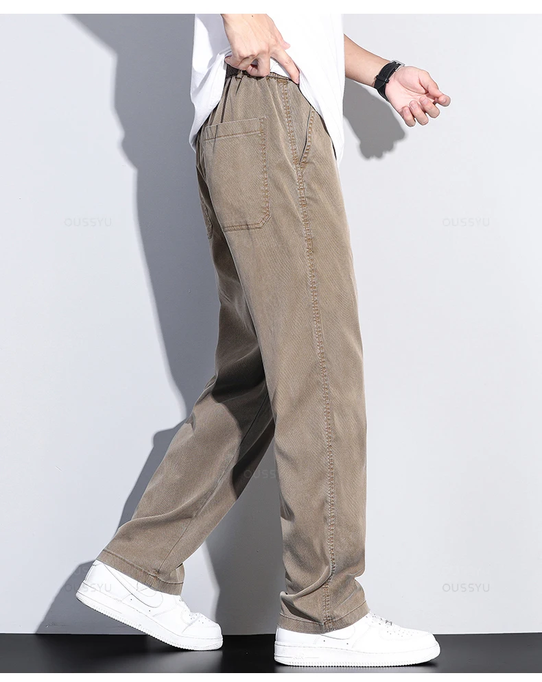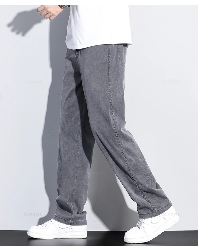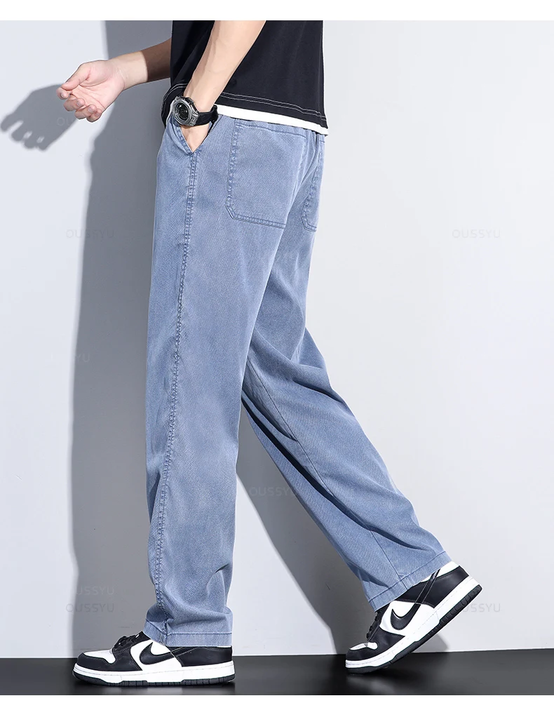 Brand Clothing Summer New Soft Lyocell Fabric Jeans Men Blue Elastic Waist Loose Straight Thin Denim Trousers Male Plus Size 5XL
