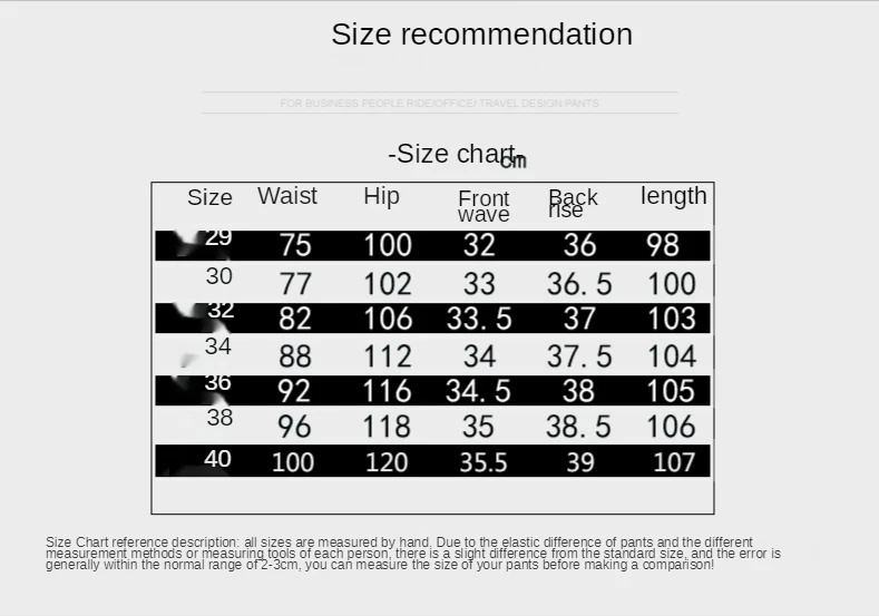 | Waist Size(in inches) | 30 – 40 |