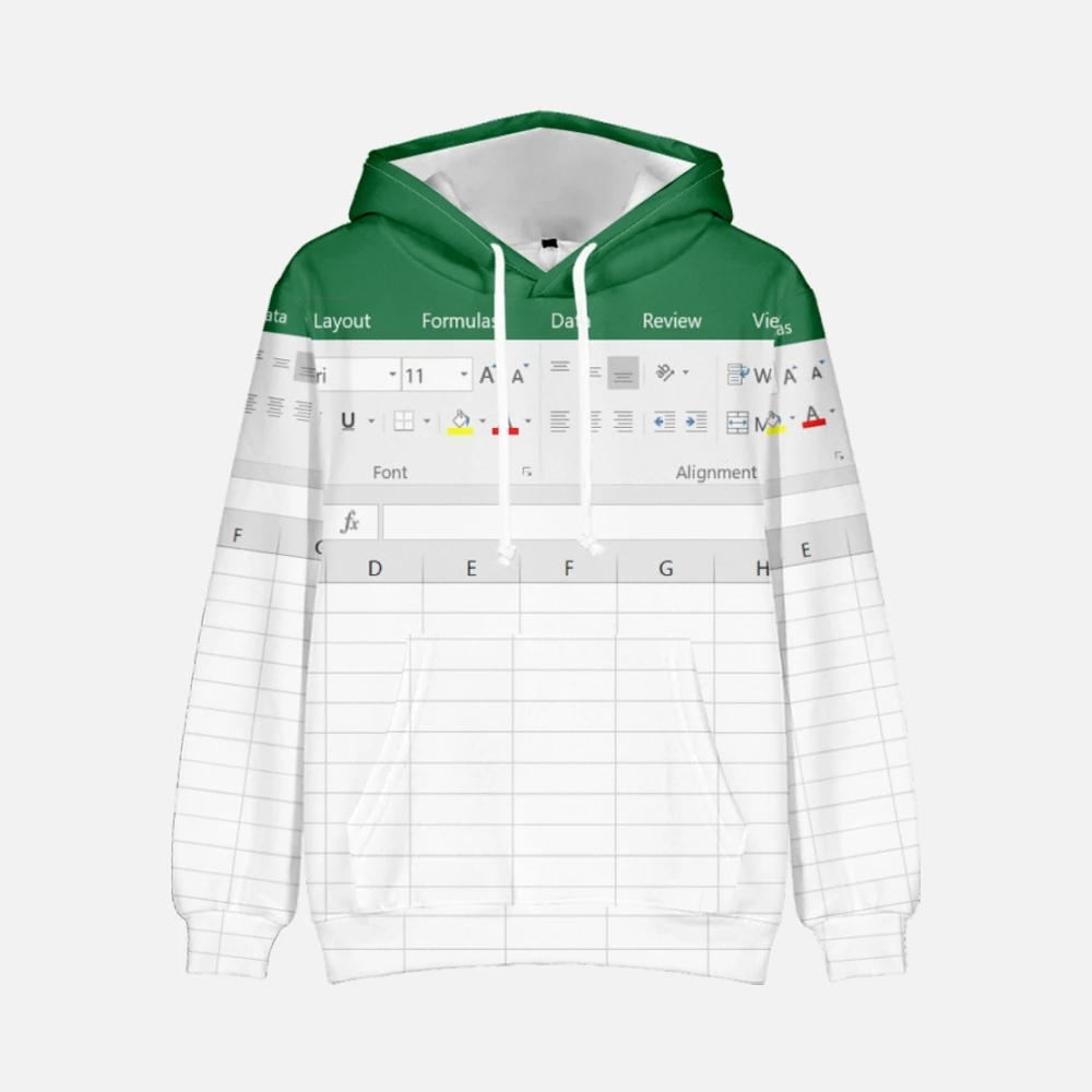 Be the first to review “Casual Excel Hoodie for Men and Women Spreadsheet Software Design Print Pullover Y2K Hombre Fashion Creative Tops”