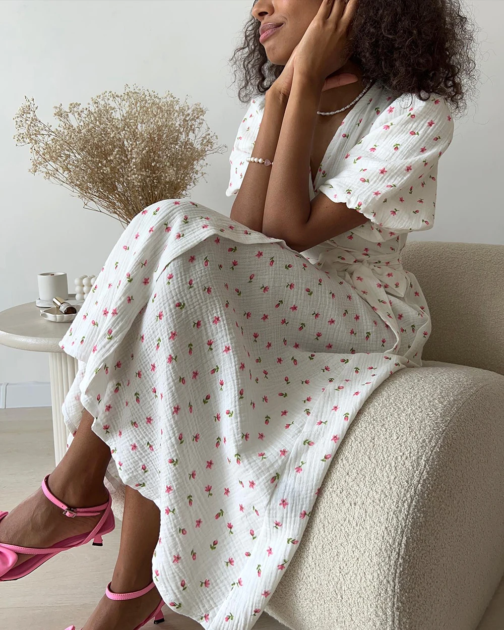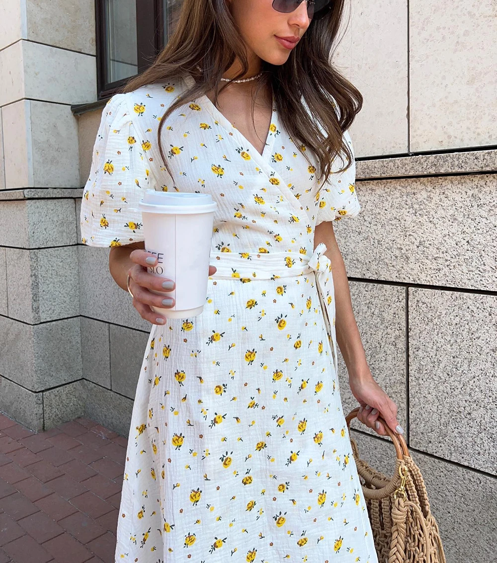 Be the first to review “Casual Women’s Summer Dresses 100% Cotton Floral Print A-line Midi Dress with Side Slits Long Elegant White Dress for Women 2025”