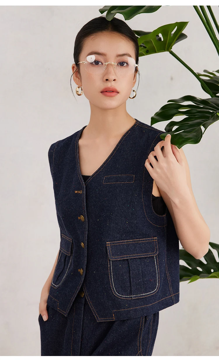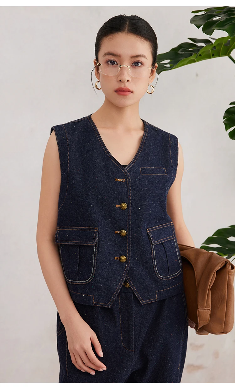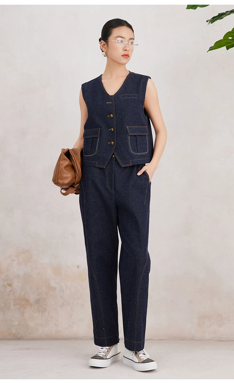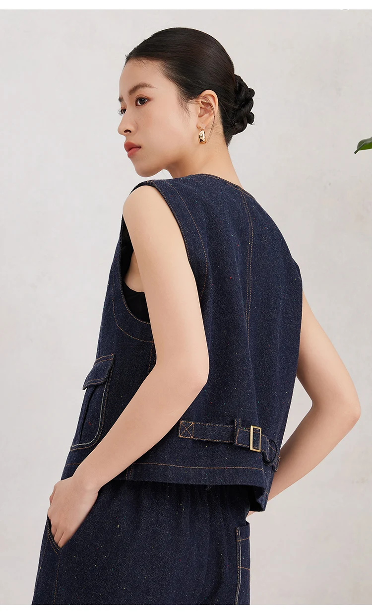 K3106W High quality luxury women’s clothing, spring and summer cotton sleeveless jeans vest