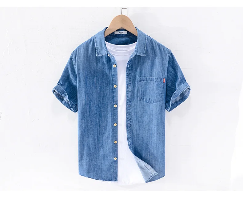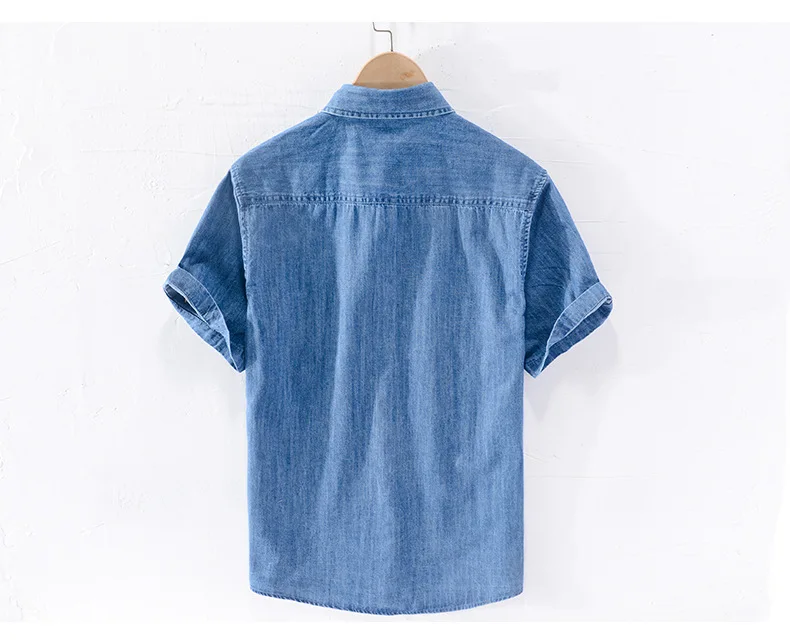 Men Denim Shirt , Thin Summer Half Sleeve Casual Top, Loose Trendy Handsome Short Sleeve ,Camping Denim Short Sleeve Jacket