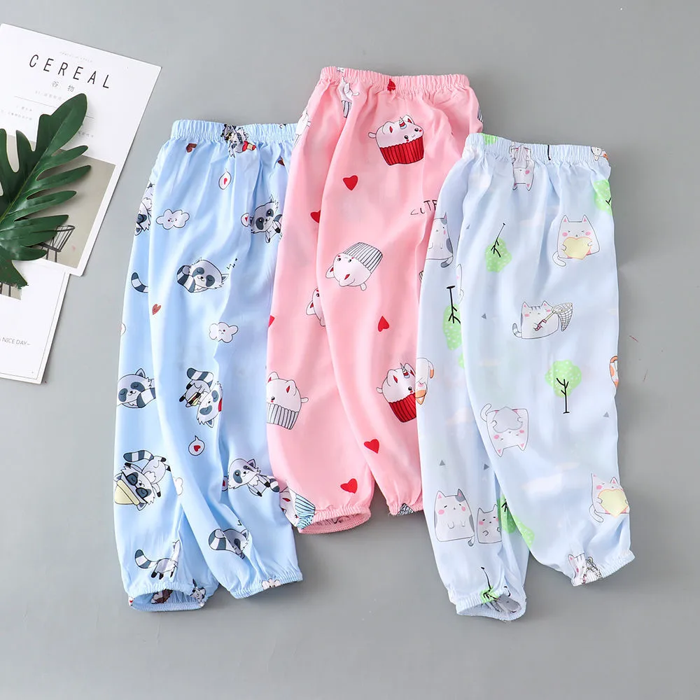 New Spring Summer Kids Leggings Boys Girls Thin Anti Mosquito Pants Candy Color Cotton Bloom Pants Trousers Baby Pajama Clothing