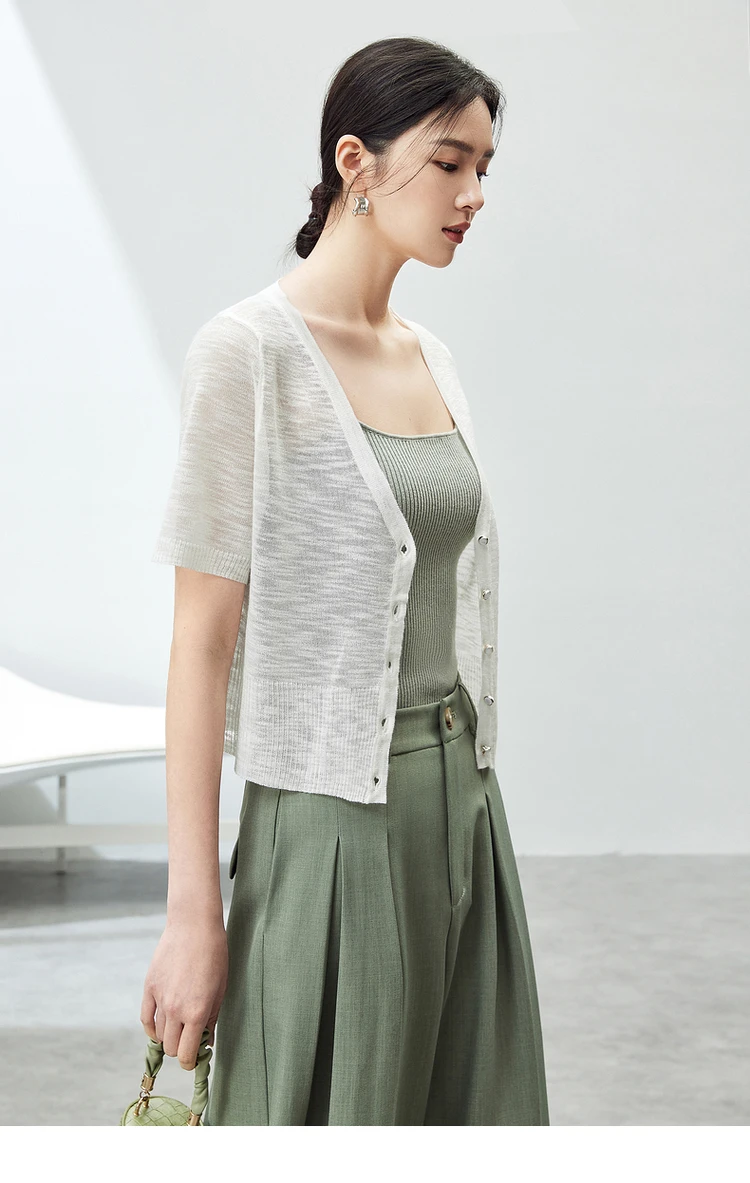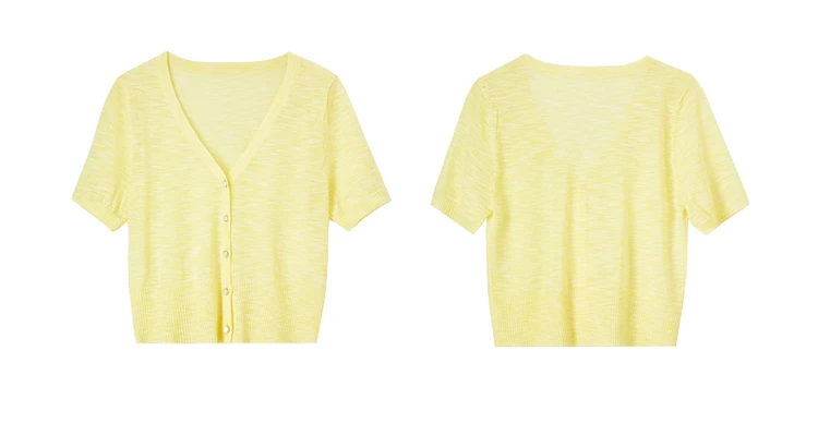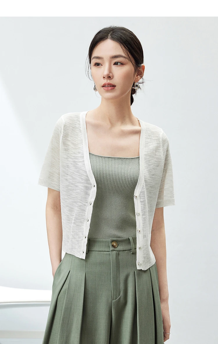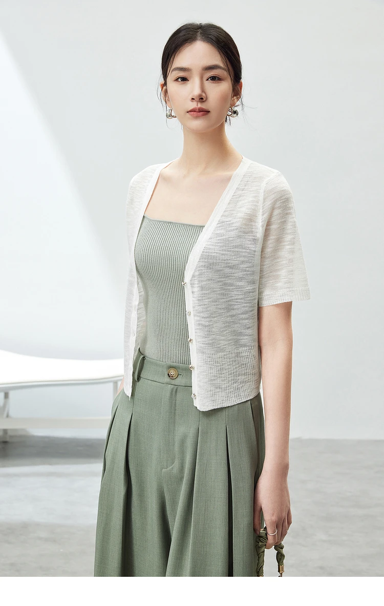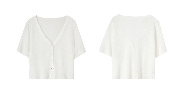 Be the first to review “SENTUBILA Soft Short Sleeve Cropped Knitted Cardigan 2024 Summer New Female Knitwears V-neck Single Breasted Tops W42H54604”