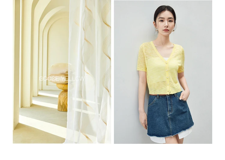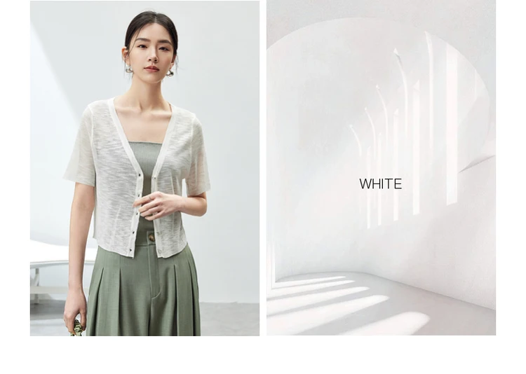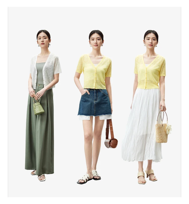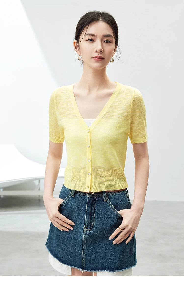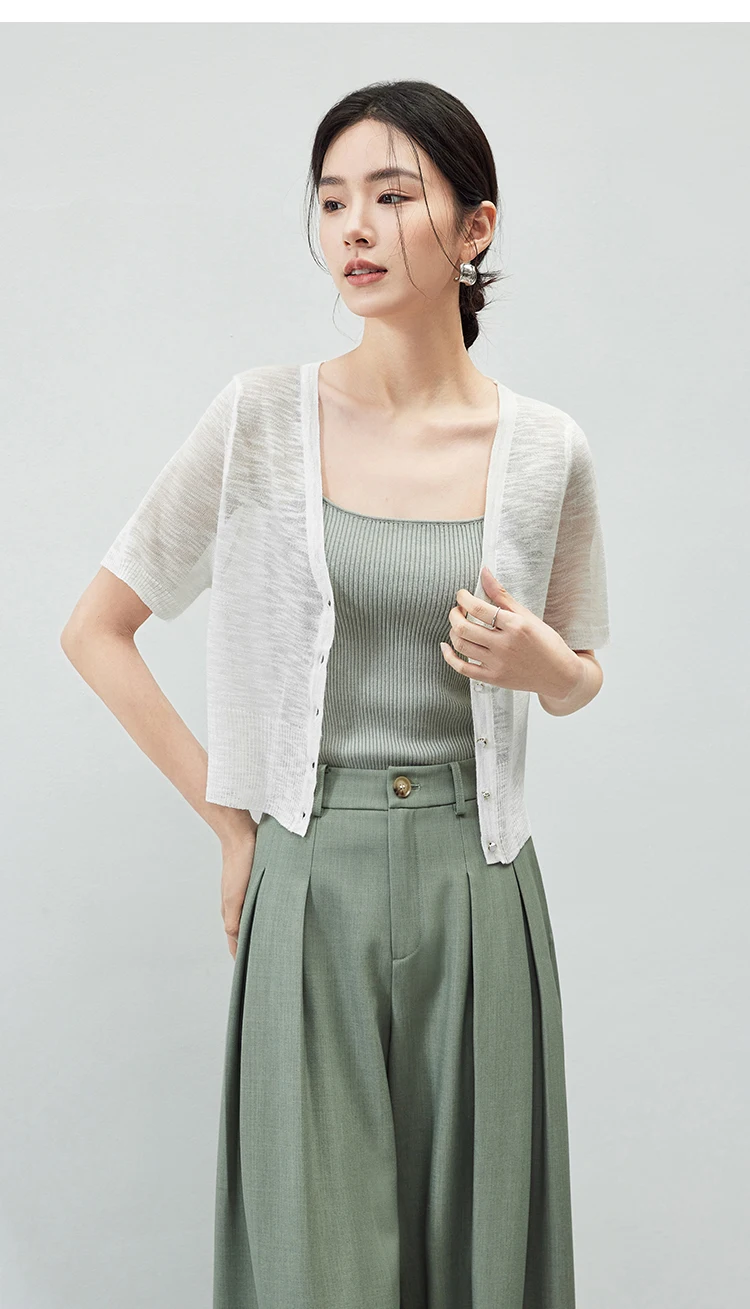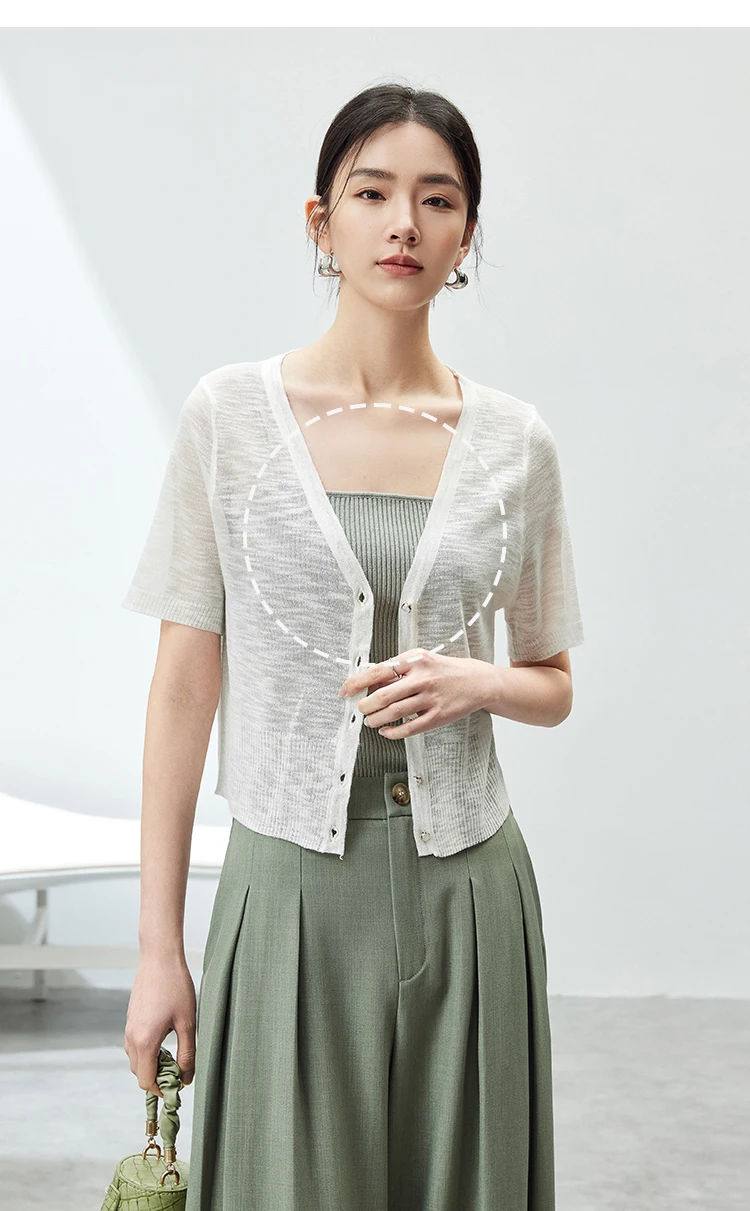 Be the first to review “SENTUBILA Soft Short Sleeve Cropped Knitted Cardigan 2024 Summer New Female Knitwears V-neck Single Breasted Tops W42H54604”