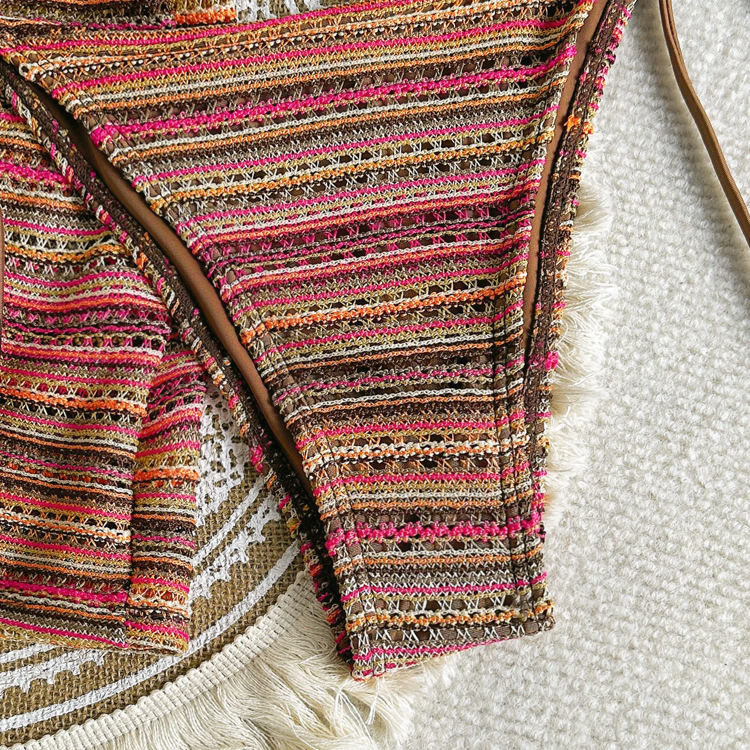 Be the first to review “sexy knitted striped halter tie bikinis sets three pieces with shorts swimsuits beachwear bathing suit swimwear biquini tankini”