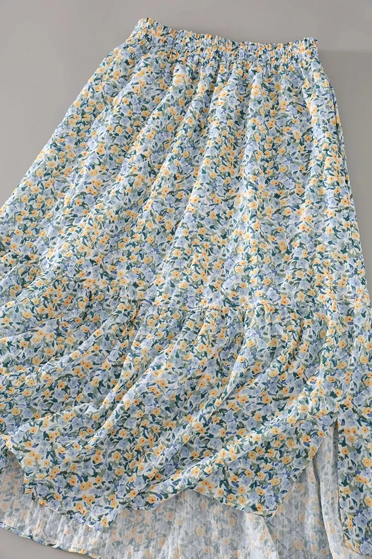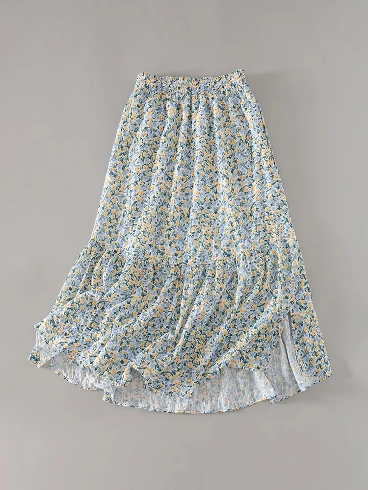 Women Skirt 2024 Summer New Fashion Temperament Gentle Vintage A-line Side Slit Skirt Slim Versatile Waist