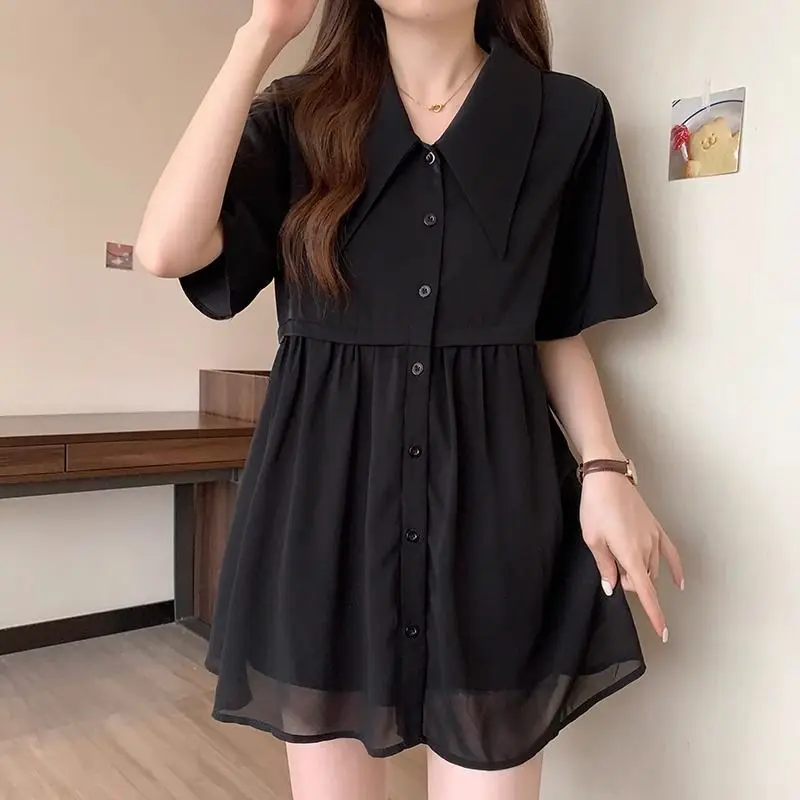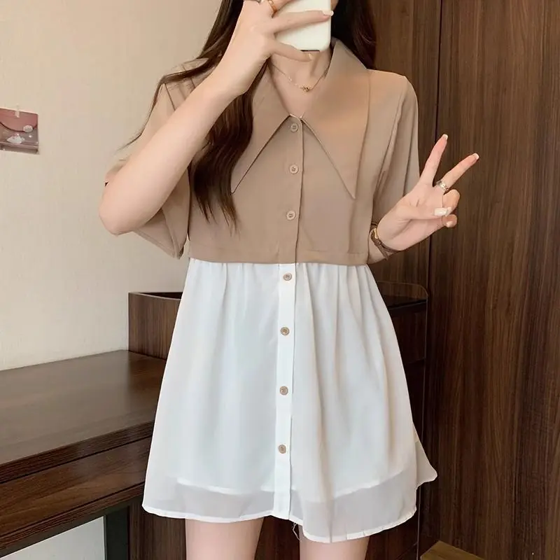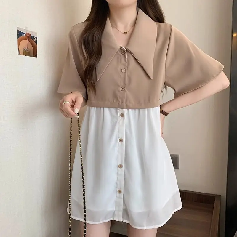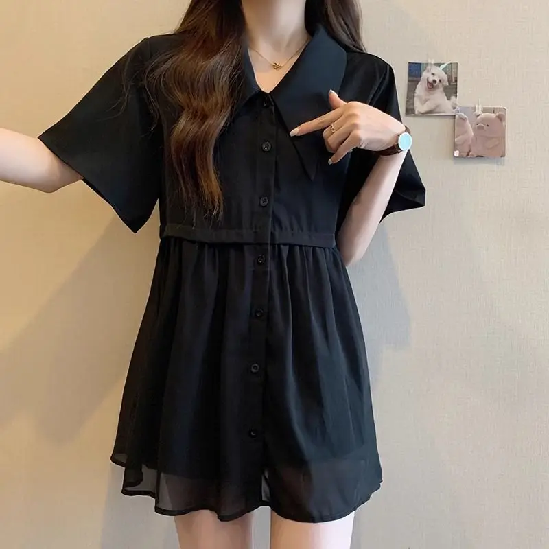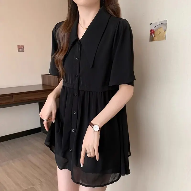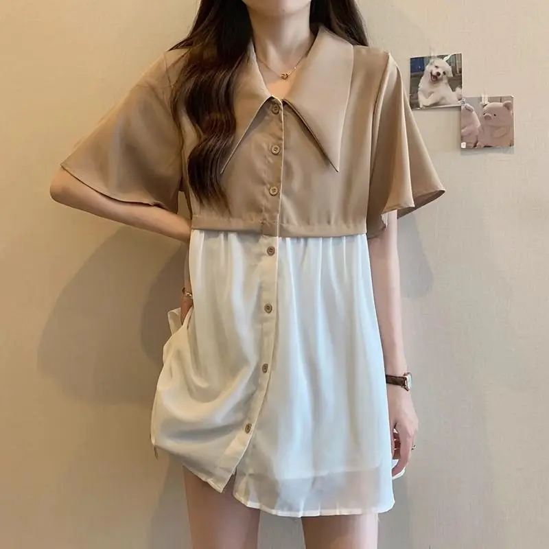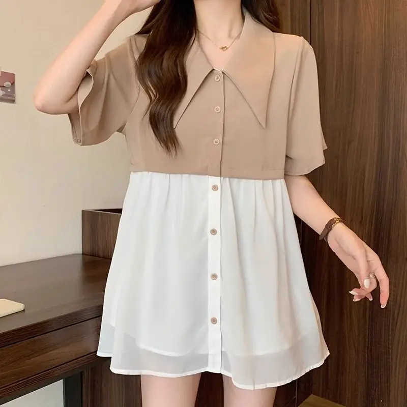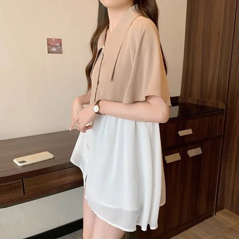 Be the first to review “Women’s Korean Fashion Ruffle Patchwork Button Up Shirt Office Lady Pointed Collar Design Commute Blouse Casual Solid Loose Tops”